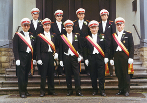 Foto vorne v.l.: Rottmeister Franz van Thiel, Rudi Heiler, Dierk Wernhard, Helmut Fahrenkamp, Willi Sander, Friedhelm Pörtner, Klaus Thiel, Jörg Riemeier